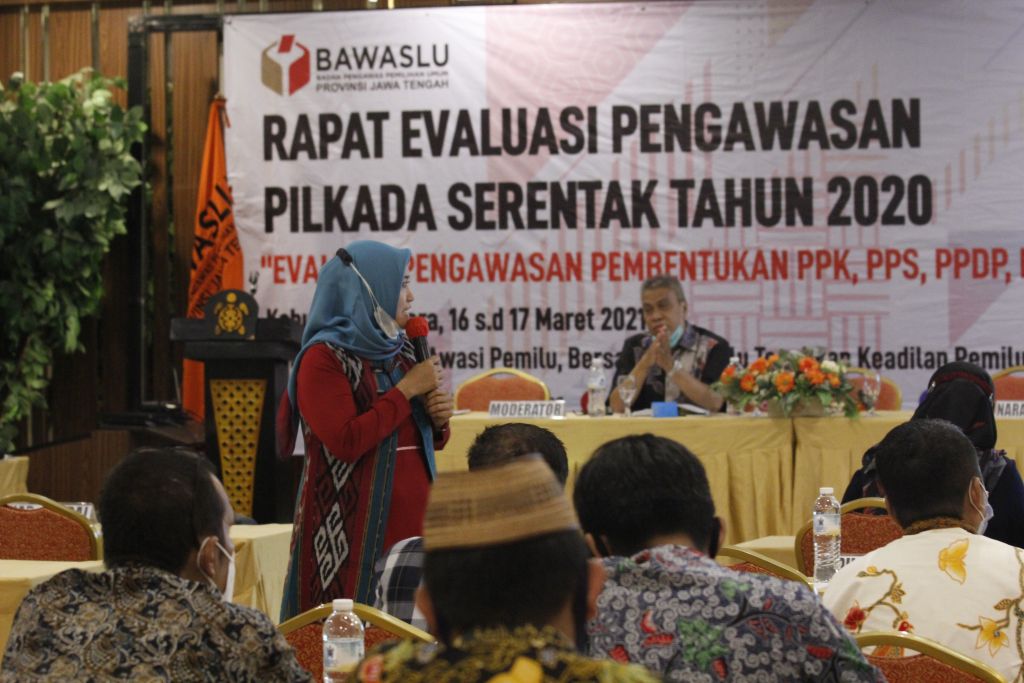 Jepara – Kegiatan evaluasi dilanjutkan pada hari kedua dengan pembahasan evaluasi 9 pokok pada badan Ad Hoc oleh Koordinator Divisi Pengawasan Bawaslu Provinsi Jawa Tengah, Rabu (17 Maret 2021).