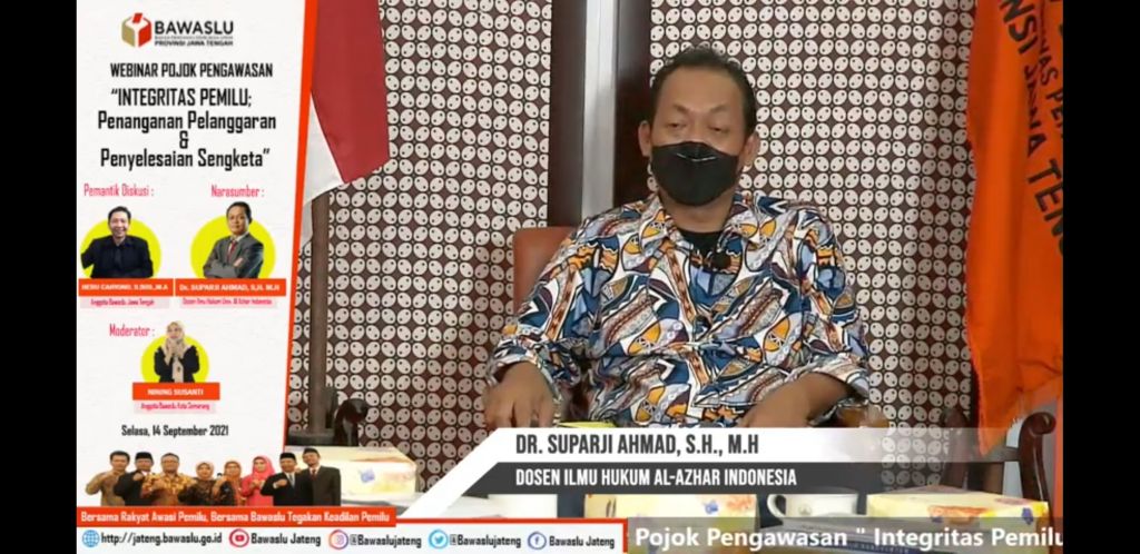 Menurut dia, pemilu berintegritas terwujud ketika mampu menciptakan keadilan pemilu. "Ini kata kuncinya," kata Suparji saat menjadi narasumber Webinar Pojok Pengawasan "Integritas Pemilu; Penanganan Pelanggaran dan Penyelesaian Sengketa Pemilu" yang digelar Bawaslu Jawa Tengah, Selasa (14 September 2021).