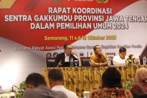 "Pola penanganan tindak pidana pada pemilu 2024, Bawaslu menjadi pintu masuk penanganan dugaan pelanggaran tindak pidana pemilu, baik itu berupa laporan atau temuan" Hal ini disampaikan Koordinator Divisi Penanganan Pelanggaran Bawaslu Provinsi Jawa Tengah Achmad Husain, saat menyampaikan materi pada Rapat Koordinasi Sentra Gakkumdu Provinsi Jawa Tengah dalam Pemilu 2024 yang digelar 11-12 Oktober 2023.