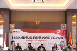 Purbalingga - Bawaslu Provinsi Jawa Tengah mengadakan kegiatan Diseminasi Peraturan Perundangan Undangan yang diikuti oleh Bawaslu 35 Kabupaten/Kota di Jawa Tengah. Kegiatan yang dilakukan di Purbalingga ini digelar dengan mematuhi protokol pencegahan Covid-19 pada Kamis (13 Agustus 2020).