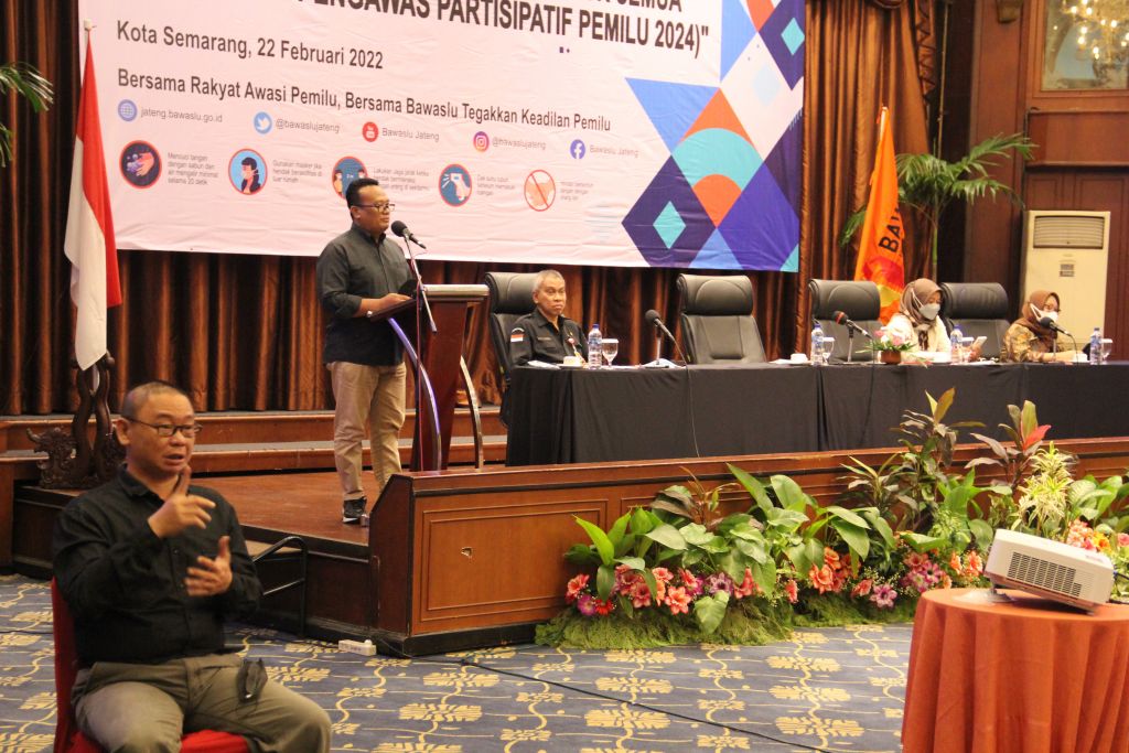 Semarang – Bawaslu Provinsi Jawa Tengah menyelenggarakan kegiatan Sosialiasi Kelompok Sasaran Disabilitas Tahun 2022 dengan tema “Menghadirkan Pemilu Inklusif Untuk Semua†Selasa (22 Februari 2022). Kegiatan yang dilaksanakan di Patra Semarang Hotel & Convention tersebut dimulai pukul 09.00 WIB.