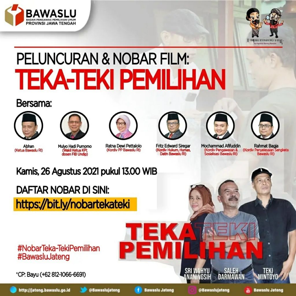 Semarang – Bawaslu Provinsi Jawa Tengah meluncurkan Film Teka-Teki Pemilihan secara virtual pada Kamis (26 Agustus 2021).