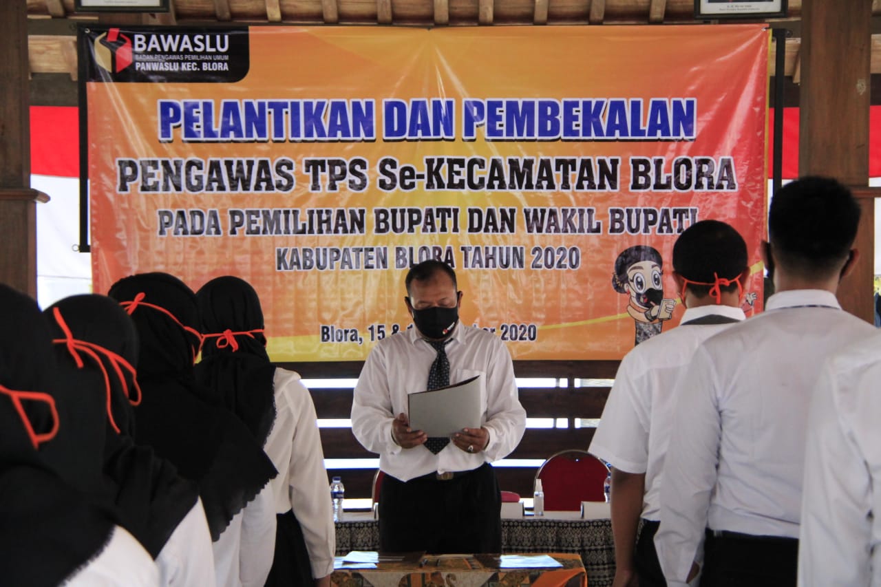Blora - Koordinator Divisi Humas Bawaslu Provinsi Jawa Tengah menghadiri acara pelantikan Pengawas Tempat Pemungutan Suara (PTPS) di wilayah Kecamatan Blora pada Minggu (15/11/2020).