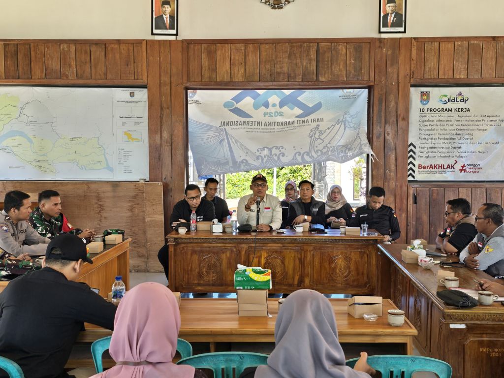 Nur Kholiq saat memberikan arahan terkait patroli kawal hak pilih di Kampung Laut Cilacap[/caption]