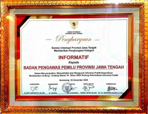 Setelah melalui proses penilaian 4 tahapan penilaian yang dimulai sejak September 2020 oleh KIP Jawa Tengah, Bawaslu Jawa Tengah meraih predikat Badan Vertikal dengan kategori informatif nomor satu.