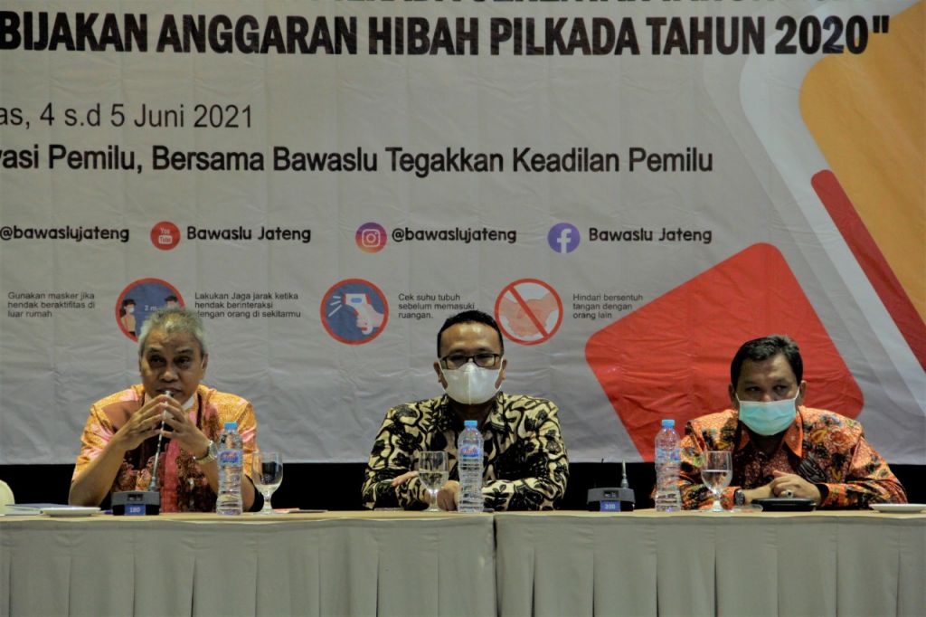 Purwokerto - Bawaslu Provinsi Jawa Tengah melakukan evaluasi terkait dengan kebijakan penganggaran hibah Pilkada 2020. Kegiatan yang dilakukan bersama dengan Komisi Pemilihan Umum di Jawa Tengah ini digelar, Jumat (4 Juni 2021)