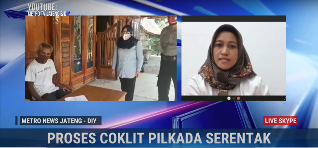 Semarang – Anggota Bawaslu Jawa Tengah Koordinator Divisi Pengawasan Anik Sholihatun menyampaikan kepada publik rangkaian tugas pada Pengawasan  Coklit melalui siaran televisi, Senin (20 Juli 2020).