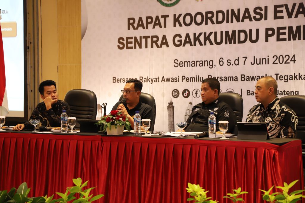 Semarang – Pelaksanaan Rapat Evaluasi Gakkumdu Pemilu menjadi ruang untuk menyampaikan hasil kinerja ketiga pilar penanganan pelanggaran pidana Pemilu pada tahapan Pemilu 2024 di Jawa Tengah.
