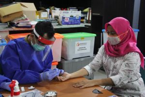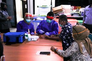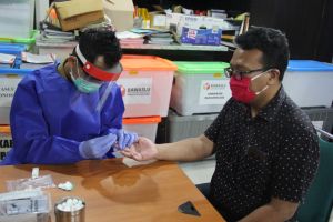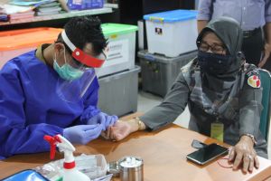 Semarang – Bawaslu Provinsi Jawa Tengah bekerjasama dengan puskesmas terdekat melakukan uji cepat (rapid tes) covid19 untuk memastikan kondisi kesehatan yang berlangsung di Kantor Bawaslu Jateng, Senin 11 Mei 2020.