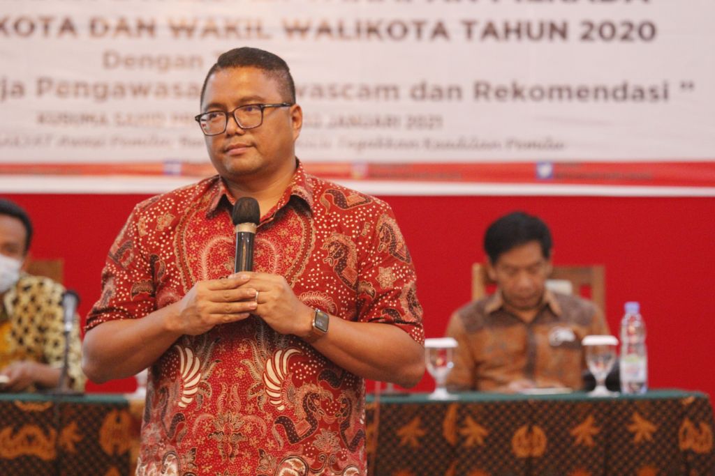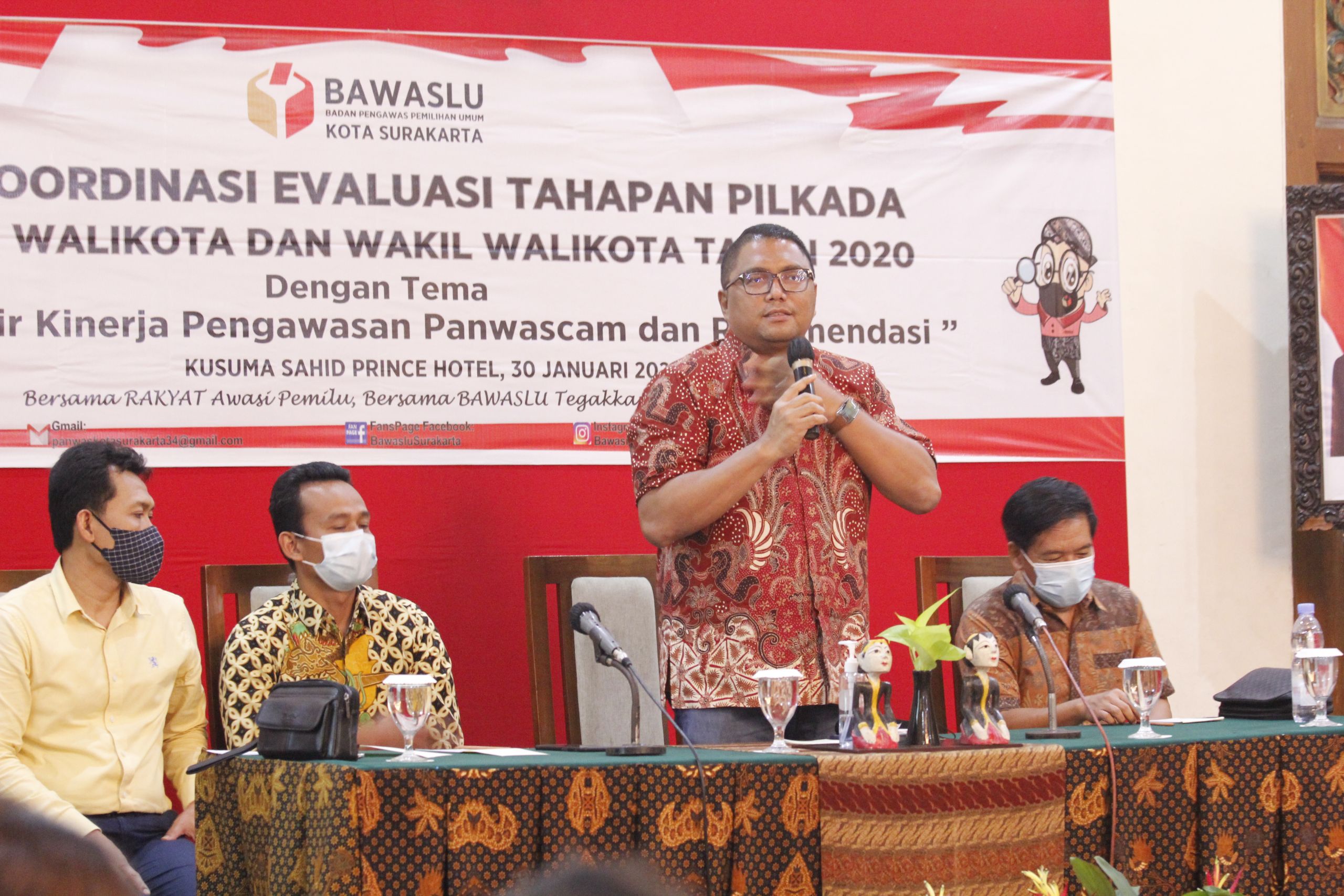 Ketua Bawaslu Kota Surakarta Budi Wahyono menyampaikan kendala yang dialami pengawas adhoc pada pilkada 2020 Seperti adanya satu kelurahan yang memiliki 100 tempat pemungutan suara (TPS).