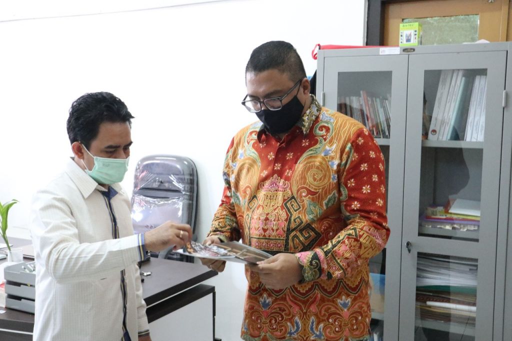 Bawaslu Kota Salatiga memberikan kenang-kenangan berupa buletin dan buku kepada Fritz Edward Siregar.