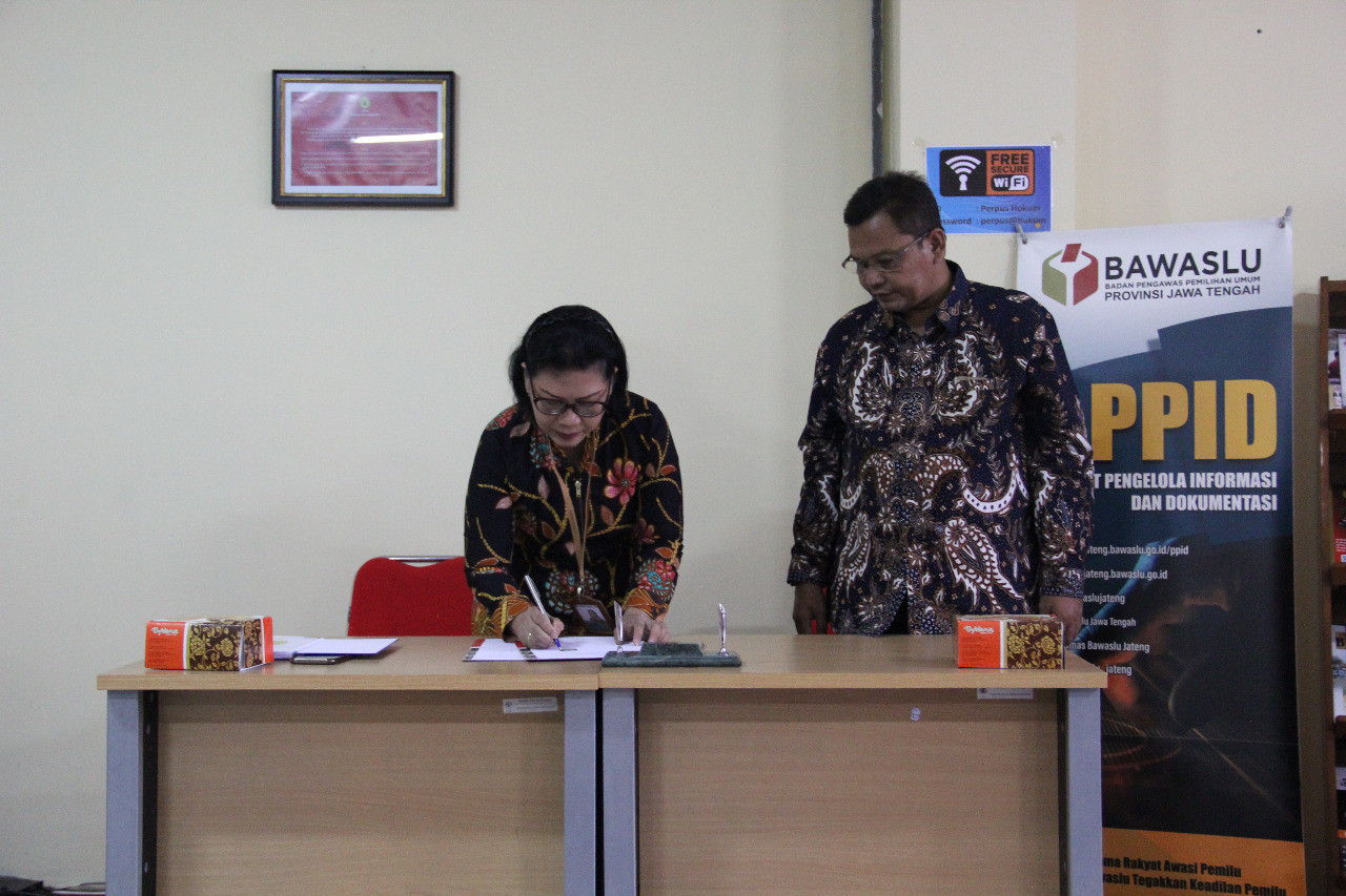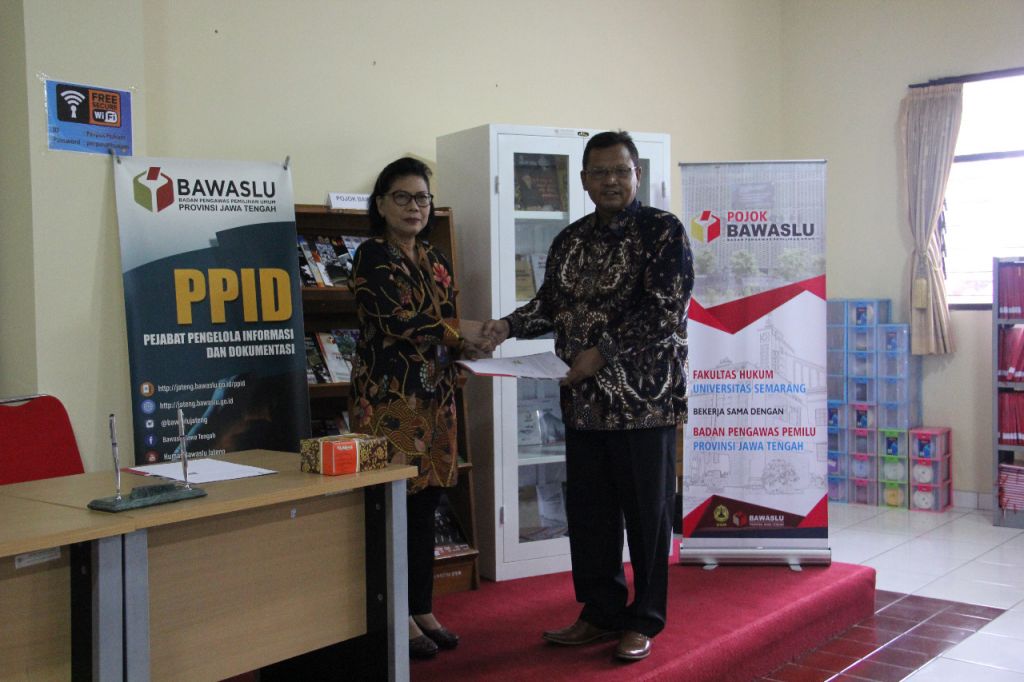 Penandatanganan MOU oleh Dekan Fakultas Hukum USM dengan Anggota Bawaslu Jateng