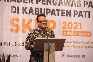(Ketua Bawaslu Jawa Tengah saat sambutan pembukaan SKPP Dasar 2021 di Kab.Pati)