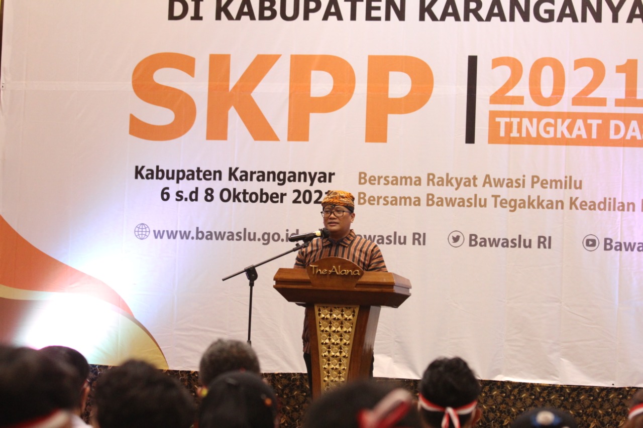 Ketua Bawaslu Jateng, M Fajar Saka memberi arahan saat penutupan SKPP tahun 2021 di Kabupaten Karanganyar.[/caption]