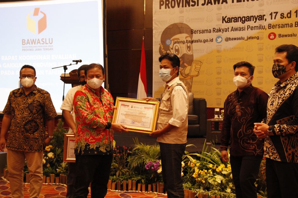 Sebagai bentuk apresiasi atas kinerja sepanjang tahapan Pemilihan 2020, Bawaslu Jateng memberikan penghargaan kepada Sentra Gakkumdu yang telah memproses penangananan pelanggaran pidana hingga ke pengadilan, yakni Sentra Gakumdu Kab. Sukoharjo, Kota Pekalongan dan Kab. Wonosobo.