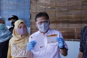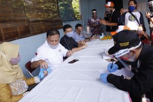 Semarang - Sabtu pagi (18/7/2020), Ketua Bawaslu RI Abhan mengikuti proses pencocokan dan penelitian (coklit) di kediamannya yang terletak di Kelurahan Sendangmulyo, Kota Semarang. Petugas Pemutakhiran Data Pemilih (PPDP) bersama Pengawas Kelurahan yang menggunakan alat pelindung diri melakukan proses pencocokan dan penelitian identitas Ketua Bawaslu RI beserta keluarga. Proses coklit yang dimulai pada pukul 10.00 wib berlangsung dengan tetap mematuhi protokol kesehatan. Hal ini terlihat dengan memperhatikan petugas PPDP yang menggunakan alat pelindung diri lengkap dan tetap menjaga jarak saat proses coklit berlangsung. Pada proses coklit PPDP didampingi oleh pengawas kelurahan mencocokan data yang tertera pada E-KTP Abhan & Keluarga dengan data yang tertera pada formulir model A KWK.