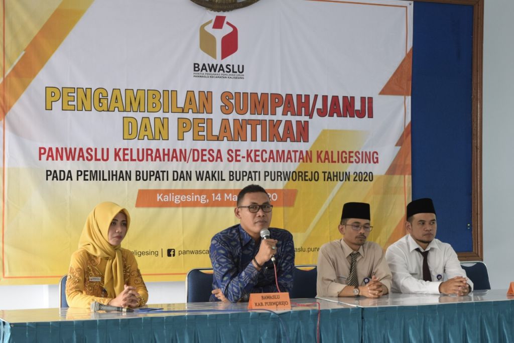 Mereka yang dilantik itu adalah Pengawas Kelurahan/Desa (PKD). Di bawah kitab suci masing-masing, janji menjalankan tugas konstitusional diucapkan dengan khidmat. Menjaga daulat rakyat dalam Pemilihan Bupati dan Wakil Bupati yang terjadwal 23 September 2020.
