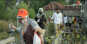 Dalam pengawasan coklit Bawaslu juga mendatangi warga yang rumahnya berada di tengah-tengah tambak. Akses jalan satu-satunya menggunakan jembatan bambu rakitan yang di ikat ala kadarnya.