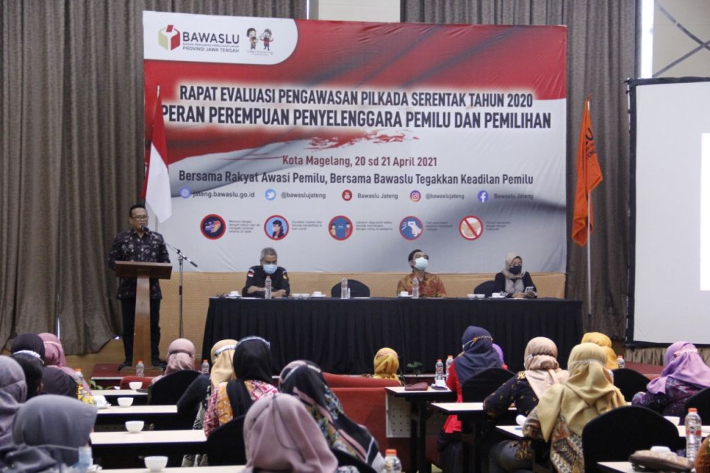 Magelang - Bawaslu Provinsi Jawa Tengah gelar Rapat Evaluasi Pengawasan Pilkada Serentak Tahun 2020 dengan tema "Peran Perempuan Penyelenggara Pemilu dan Pemilihan", Selasa (20 April 2021).