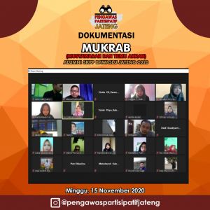Semarang – Alumni Sekolah Kader Pengawas Partisipatif (SKPP) Badan Pengawas Pemilu (Bawaslu) Jawa Tengah Gelombang I (Salatiga) dan II (Banjarnegara) gelar Musyawarah dan Temu Akrab (MUKRAB) secara virtual, Pada Minggu (15 November 2020)