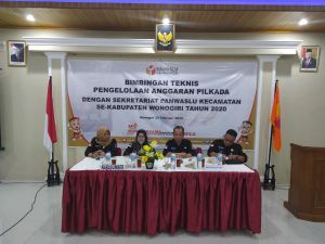 Wonogiri Jawa Tengah – Kepala Sekretariat Bawaslu Provinsi Jawa Tengah Kartini Tjandra Lestari, Selasa siang (25/2/2020) memberikan Bimbingan Teknis Pengelolaan Angaran Pilkada 2020. Kegiatan Bimtek yang mengundang Kepala Sekretariat, PUMK dan Staf Operator SAS dari 25 Kecamatan se-Kabupaten Wonogiri ini dimaksudkan untuk memberikan arahan teknis bagi Sekretariat Panwascam untuk mengelola Dana Hibah sesuai Dasar Hukum yang menjadi acuan yaitu PMK Nomor 89/PMK.05/2016 tentang Tata Cara Pengelolaan Hibah Langsung dan Keputusan Ketua Bawaslu RI Nomor 0238/K.Bawaslu/OT.03/IX/2019.