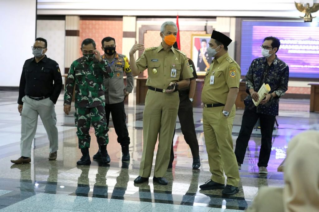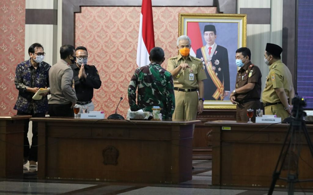 SEMARANG - Pemerintah Provinsi Jawa Tengah menegaskan larangan adanya kampanye terbuka dalam Pilkada 2020. Penegasan itu muncul dalam rapat yang digelar Gubernur Jawa Tengah Ganjar Pranowo dengan jajaran penyelenggara pemilu dan instansi terkait, yakni Ketua KPU, Ketua Bawaslu, Kapolda, Pangdam IV Diponegoro dan Kajati Jateng di Gradhika Bhakti Praja, Senin (28/9).