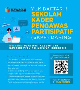 Peserta yang memenuhi syarat bisa ikut mendaftar program ini pada 5 hingga 8 April 2020. Pendaftaran dilakukan melalui link: www.bawaslu.net/skpp